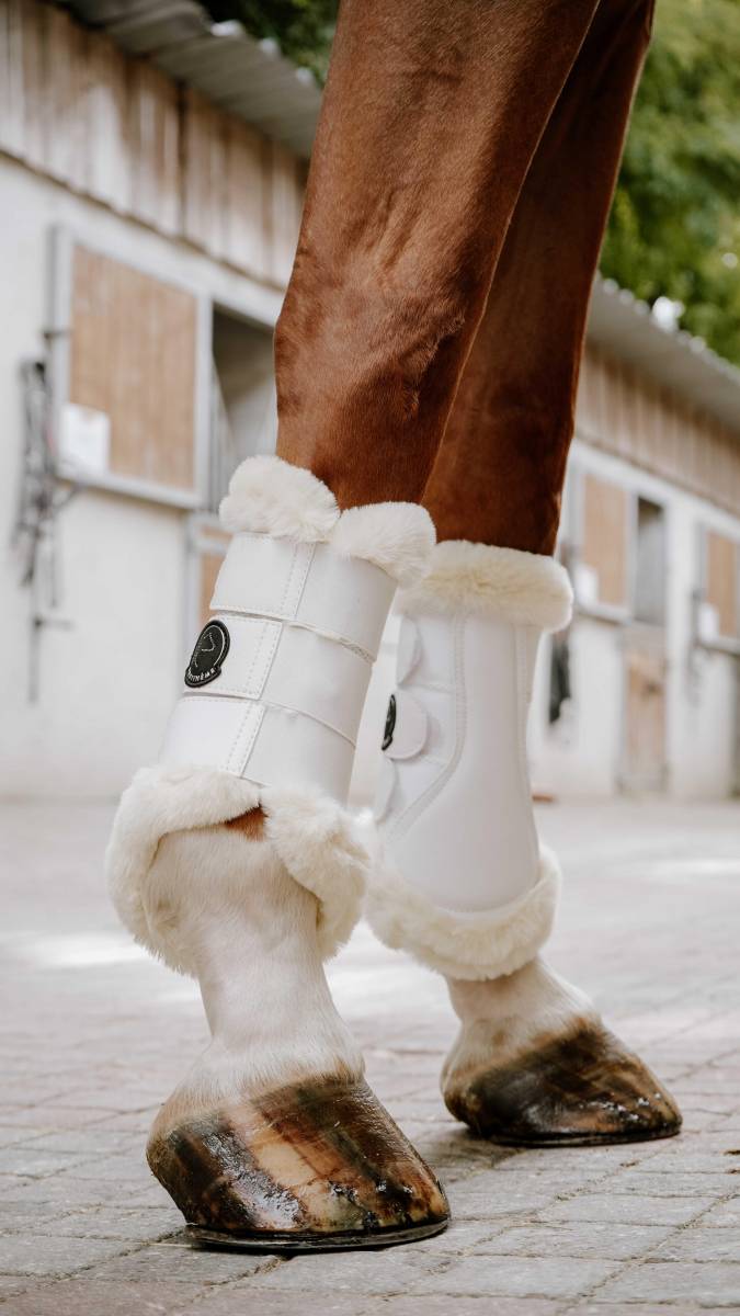 Les guêtres fermées Je t'aime EQUITHÈME Snuggy allient style et confort, tout en assurant une protection efficace pour votre cheval lors de l'entraînement.