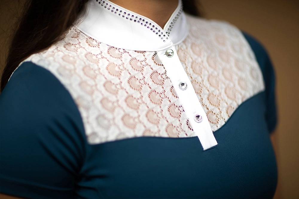 Le haut Crystal Champion de la marque Equestrian Stockholm se distingue par sa teinte bleue éclatante et ses délicats détails en dentelle blanche, tant à l'avant qu'à l'arrière. Orné de cristaux scintillants le long du col et de boutons en cristal, ce haut est conçu pour vous faire remarquer lors de vos compétitions. Associez-le à la veste de concours de la collection Blue Meadow pour un ensemble harmonieux.