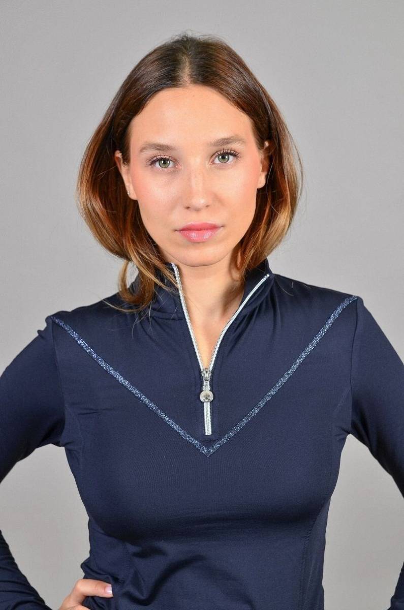 La fermeture du polo s'effectue par un zip sur le devant du col.