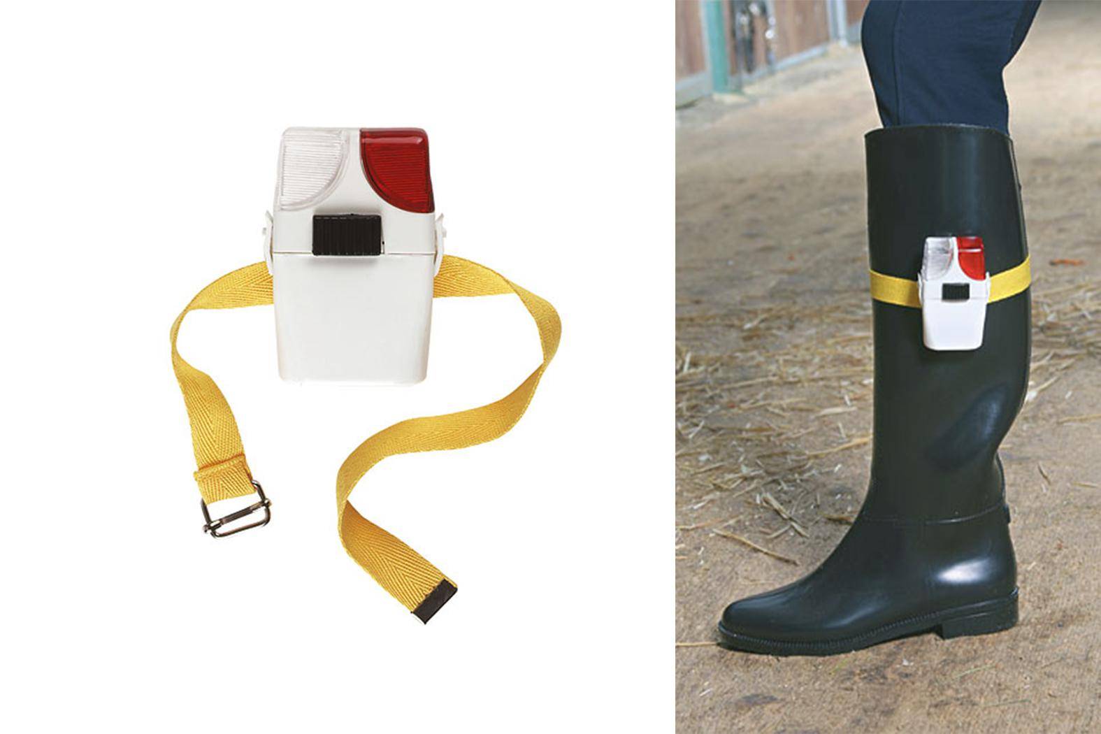 La lampe pour bottes de chez Kerbl vous permet d'avoir une visibilité au niveau de votre botte (grâce à la lanière de fixation).