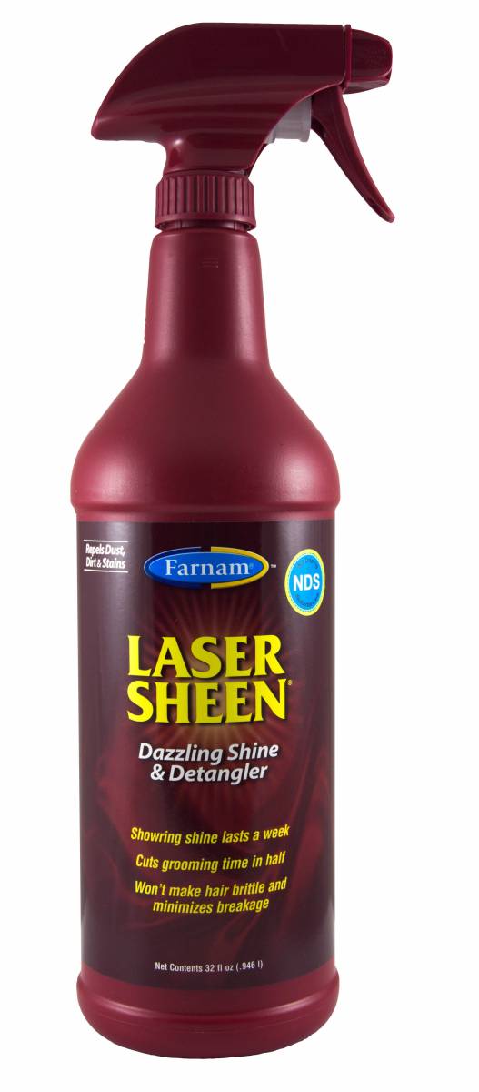 Lustrant antistatique, anti-salissures longue durée, extraordinaire démêlant pour la queue et la crinière, LASER SHEEN donne un brillant exceptionnel à toutes les robes en une légère vaporisation