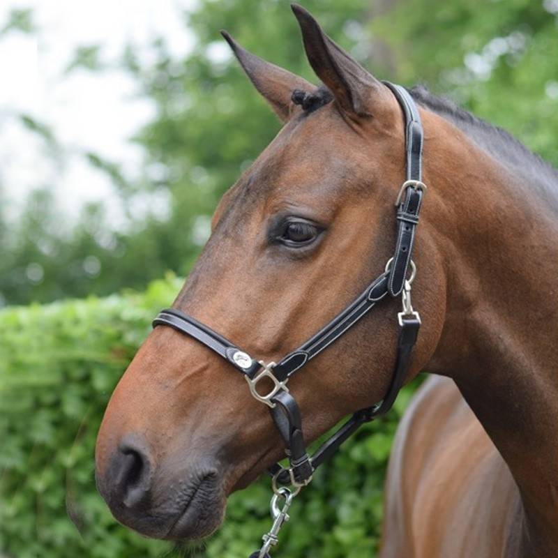 Fermeture pratique et sécurisée : Ce licol se ferme des deux côtés par deux boucles, ce qui le rend extrêmement facile à manipuler. Avec sa troisième boucle placée sous la tête, vous pouvez attacher votre cheval en toute sécurité grâce à l'anneau qui y est relié.