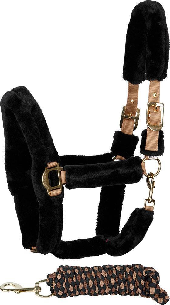 - Ensemble licol entièrement recouvert de fausse fourrure, ajustable sur le nez et le harnais et muni de boucles métalliques.