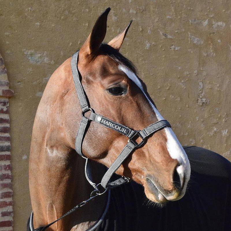 Enfin, l' inscription Harcour sur le montant du licol en rappel sur la longe apporte le prestige de la marque à cet équipement d'équitation.