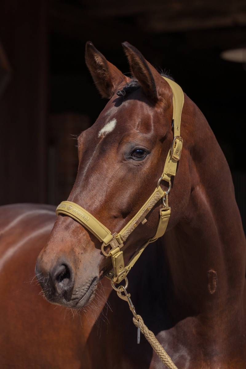 Le licol en similicuir Heritage 2025 d'Eskadron est conçu pour offrir à la fois style et fonctionnalité, tout en assurant le bien-être de votre cheval.