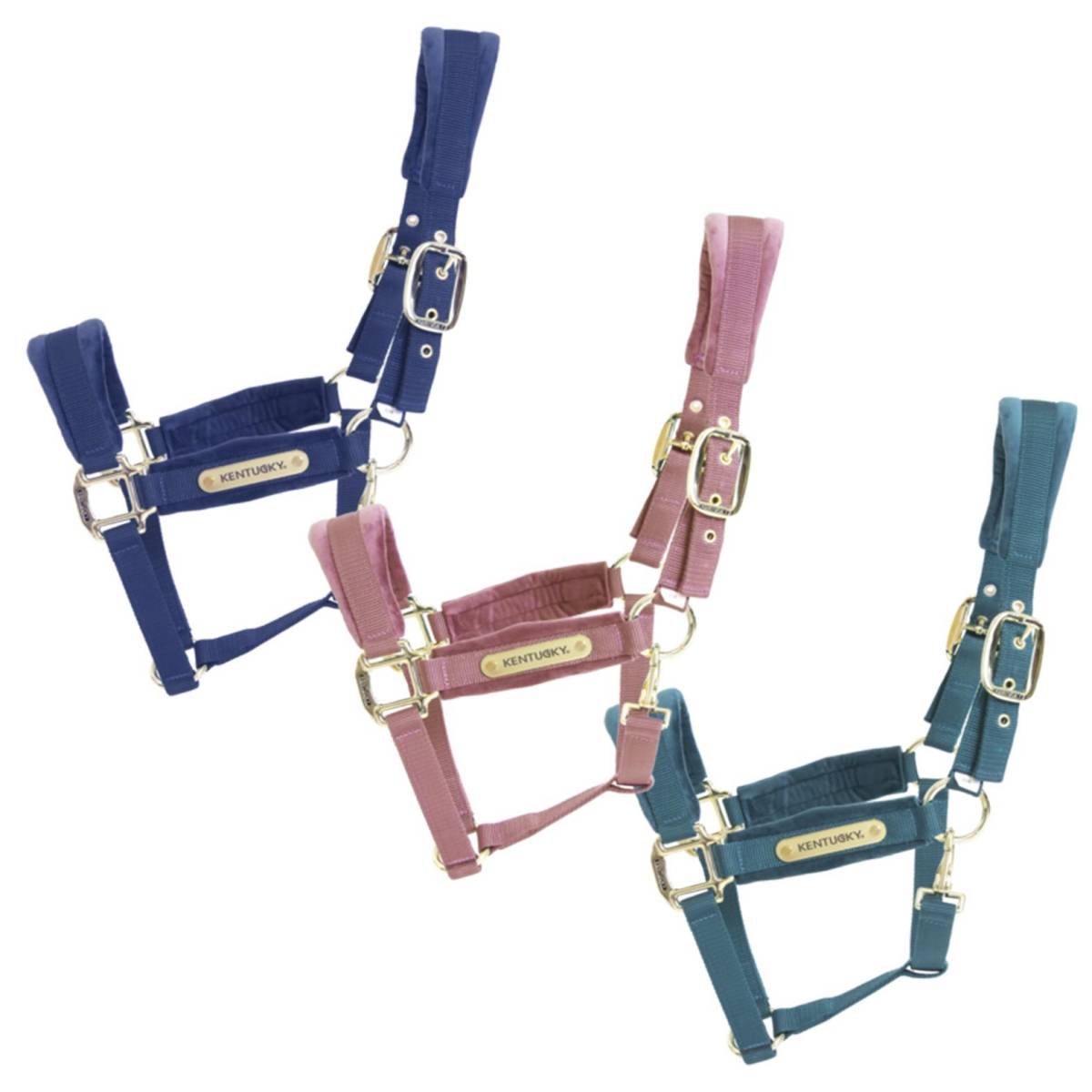 Le licol Velvet de chez Kentucky est fabriqué dans un tissu en nylon résistant pour assurer la sécurité de votre cheval.