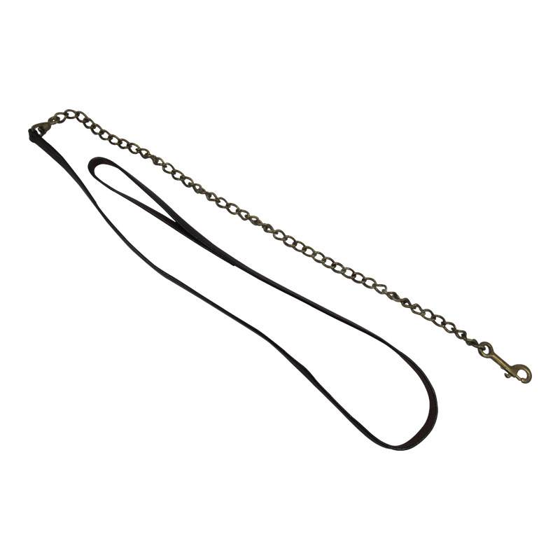 Cette longe de présentation luxe est en cuir marron avec chaine et mousqueton est idéale pour présenter vos chevaux lors des présentations ou des ventes.