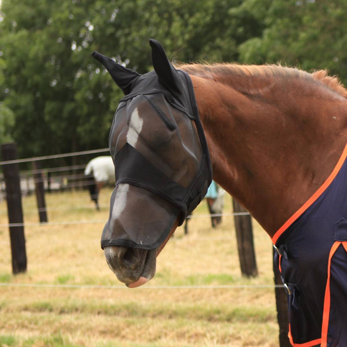 Le masque offre une très bonne visibilité au cheval et est conçu pour protéger le cheval du bout des oreilles au bout du nez..