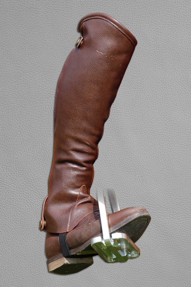 Mini chaps en cuir modèle classic de chez Dy'on Conçu pour le cheval et pour un usage PROFESSIONNEL.