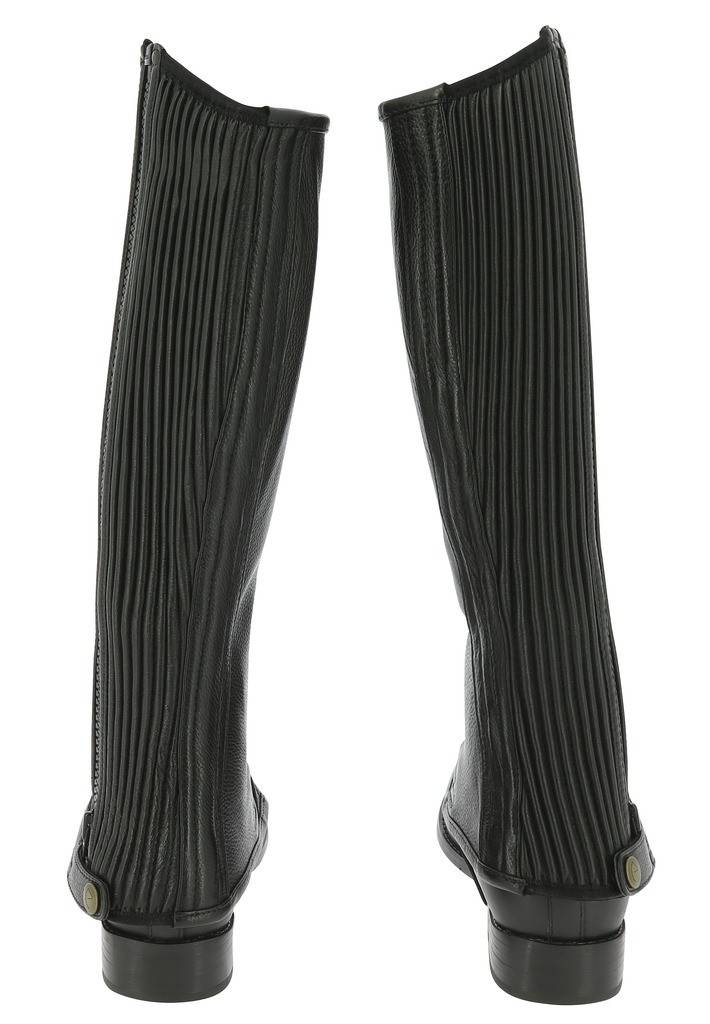 Ces mini chaps en cuir de vachette sont conçues pour épouser parfaitement la forme de votre jambe grâce à leur élastique au mollet et au coup de pied. Élégantes et raffinées, elles allient confort et style sur le terrain.