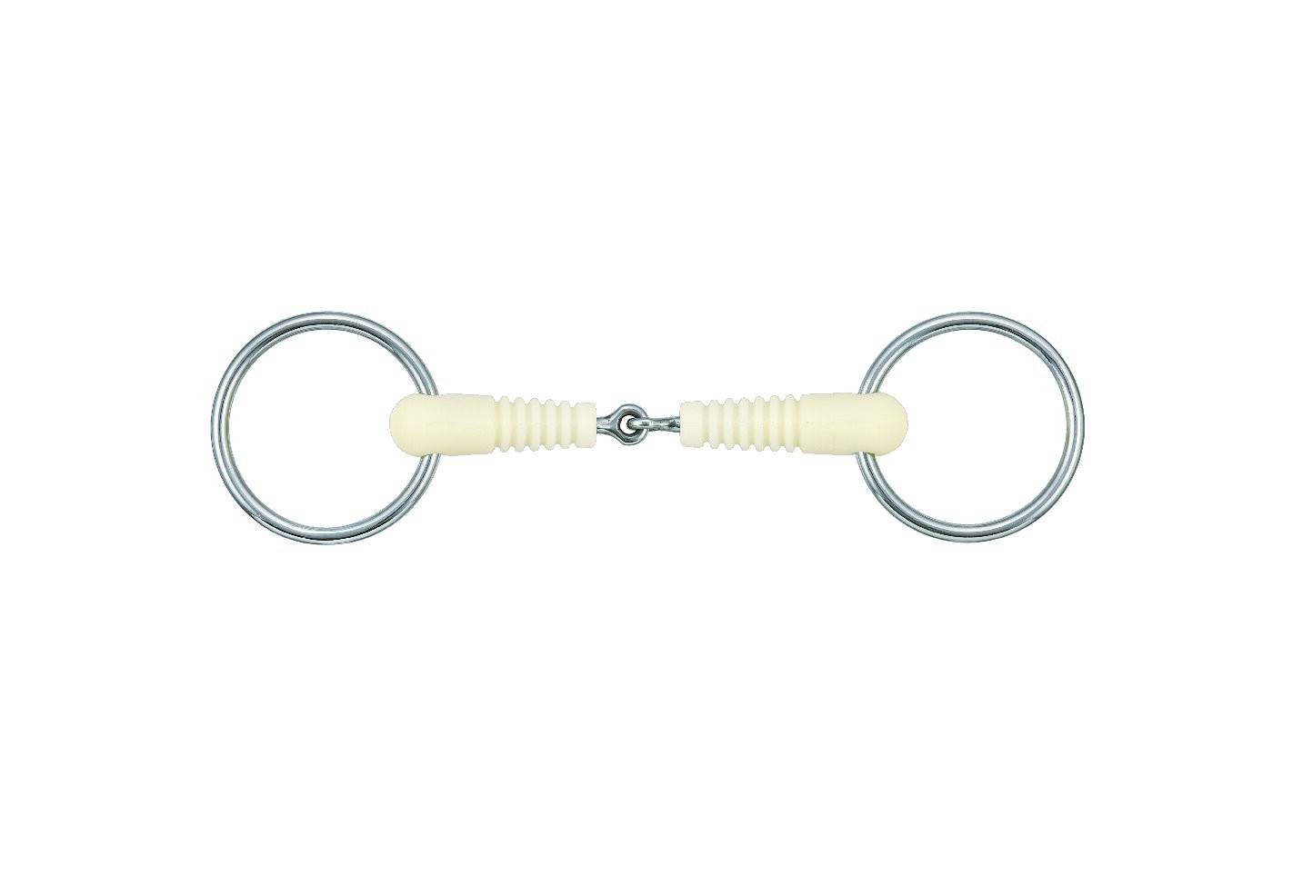 Le mors à anneaux loose ring simple brisure ribbé de Happy Mouth est conçu pour offrir une expérience de conduite agréable tout en garantissant une communication efficace entre le cavalier et le cheval. Fabriqué avec des matériaux de qualité, ce mors allie innovation et confort.