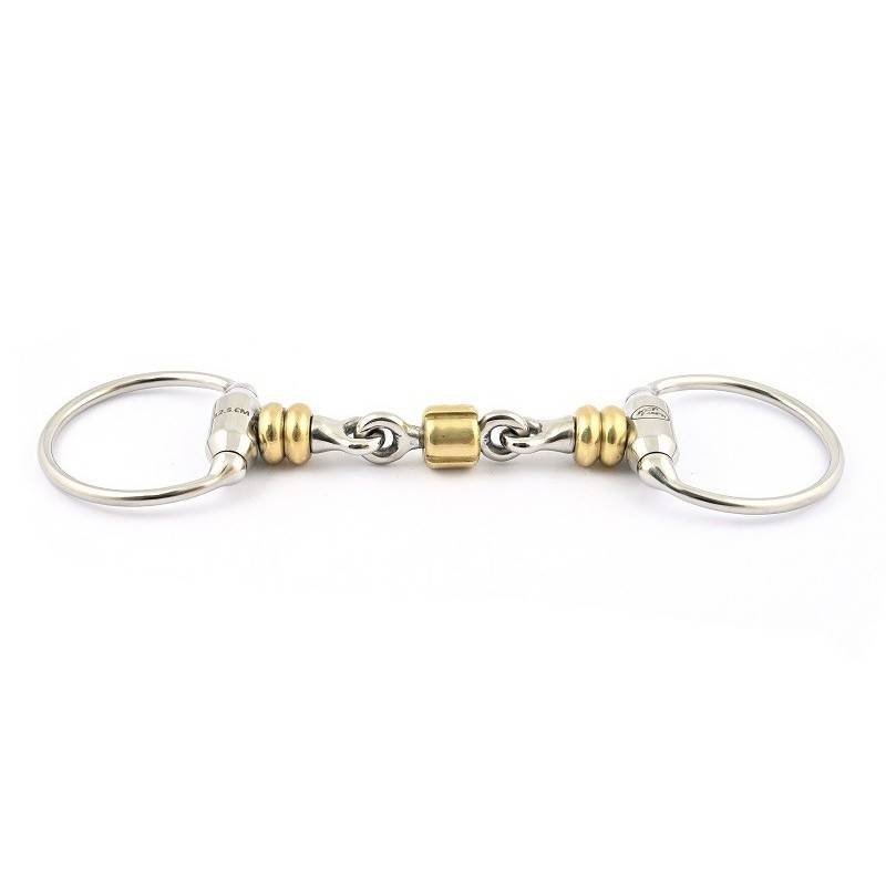 Le mors à olives à rouleaux est conçu pour offrir une action plus directe et un travail en douceur avec votre cheval. Sa composition en German Silver, un alliage de cuivre, zinc et nickel, offre une solidité exceptionnelle tout en offrant un effet décontractant. L'embouchure simple et les anneaux qui ne coulissent pas permettent une action directe, offrant ainsi une réponse immédiate aux aides du cavalier.