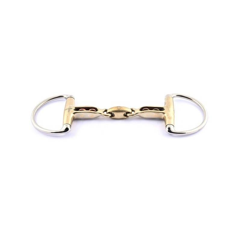 Le mors à olives double brisure Mac Genis est fabriqué à partir d'un alliage de German Silver, composé de 65% de cuivre, 23% de zinc et 12% de nickel. Cet alliage offre à la fois une résistance et un effet décontractant pour votre cheval. L'embouchure simple avec des anneaux fixes garantit une action directe lors de la communication avec votre cheval. La double brisure du mors permet de libérer la pression dans le palais, offrant ainsi plus de confort à votre cheval.