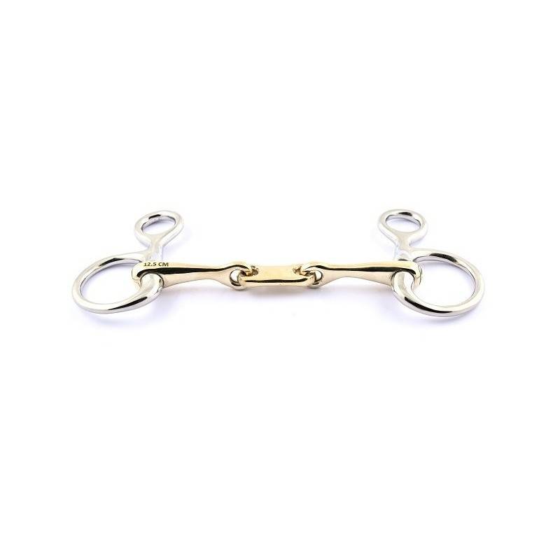 Avec le Mors baucher à palette, vous pouvez améliorer l'attitude de travail de votre cheval. Fabriqué en German Silver, un alliage décontractant et solide, ce mors offre un petit effet de levier grâce à sa double brisure qui libère la pression sur le palais.