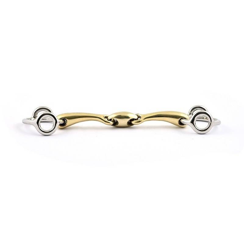 Avec le Mors de filet de bride releveur double brisure, vous offrez à votre cheval un moyen efficace de retrouver son équilibre et de reporter sa masse sur l'arrière main. Grâce à ses anneaux de 30 mm, ce mors agit de manière ciblée sur l'équilibre du cheval, l'incitant à se re-équilibrer naturellement. L'alliage de German Silver utilisé pour le canon fin de 14 mm offre à votre cheval un confort optimal tout en garantissant une solidité à toute épreuve. Que vous utilisiez ce mors en bride ou en filet en direct, il s'adapte parfaitement sans prendre trop de place dans la bouche du cheval. Offrez à votre cheval un meilleur équilibre avec le Mors de filet de bride releveur double brisure.