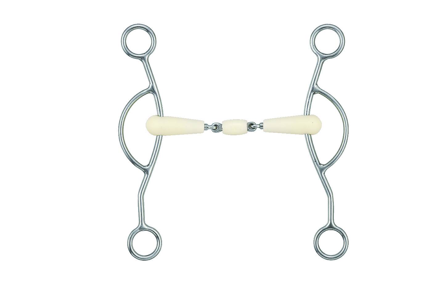 Le mors double brisure Happy Mouth est conçu pour offrir un confort inégalé à votre cheval, grâce à sa fabrication en résine parfumée et à son design réfléchi.