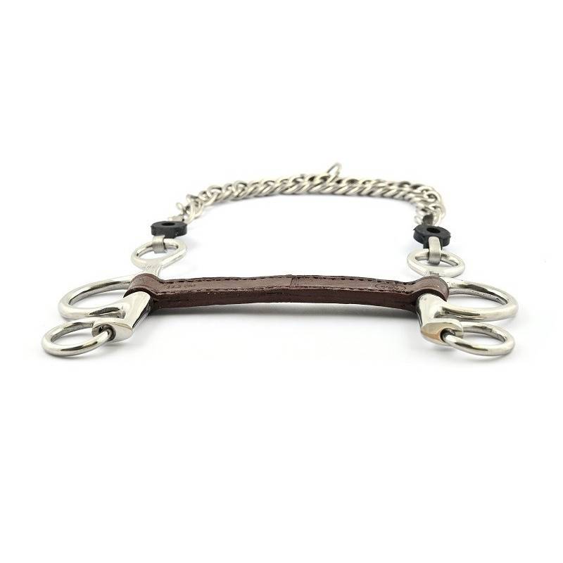 Conseils d'utilisation : Pour adoucir l'action de la gourmette, vous pouvez utiliser d'autres types de gourmette comme le cuir ou le nylon. Le canon en cuir plat assure un contact optimal, équivalent à une sensation peau contre peau. Au fil du temps, le cuir s'assouplira dans la bouche du cheval, établissant une relation de confiance et garantissant un confort optimal.