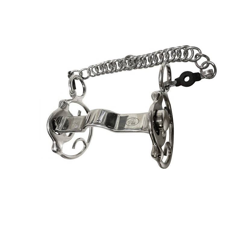 Le Mors Goyo Aga plat canon inclinable est une embouchure unique en son genre, conçue spécialement par Jump'In pour répondre aux besoins particuliers des chevaux qui nécessitent une prise de contact précise et confortable. Avec ses anneaux de 70 mm et son canon large de 30 mm en Inox, ce mors offre un effet abaisseur ajustable en fonction de la position de la rêne sur l'anneau et le serrage de la gourmette.