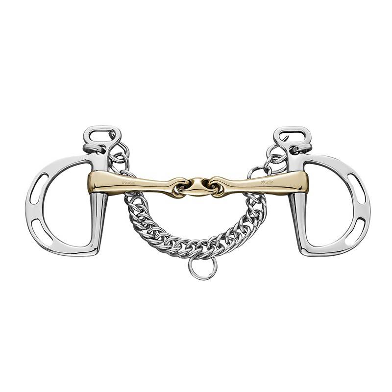Mors Sprenger en Sensogan , nouvel alliage breveté composé de cuivre, manganèse et zinc né de la collaboration de Sprenger avec l'École Vétérinaire de Hanovre et l'École Allemande d'Équitation de Warendorf.