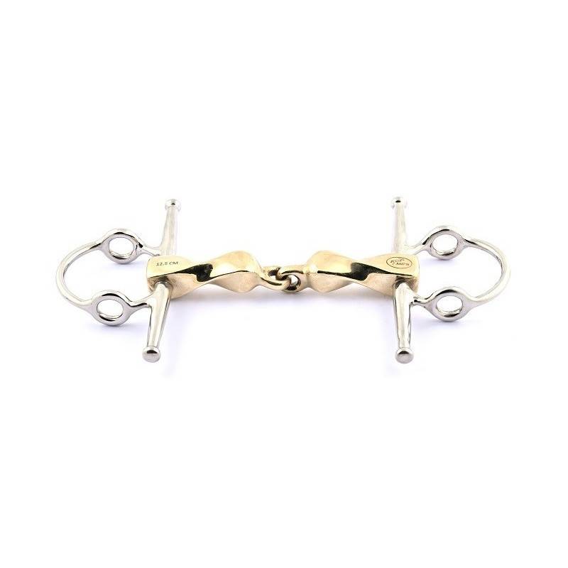 Ce mors convient aux bouches anatomiquement larges et peut être utilisé avec des montants spéciaux en direct, avec des alliances ou en quatre rênes. L'entretien de ce mors est simple, il suffit de le rincer après chaque utilisation pour éviter les dépôts de résidus qui pourraient causer de l'inconfort à votre cheval.