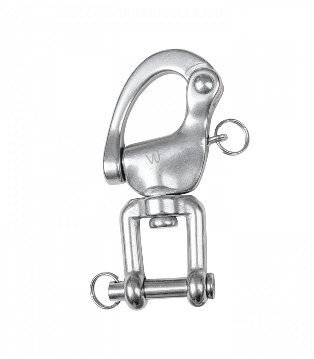 Mousqueton d'attelage en acier inoxydable de 9 cm, idéal pour une utilisation robuste.