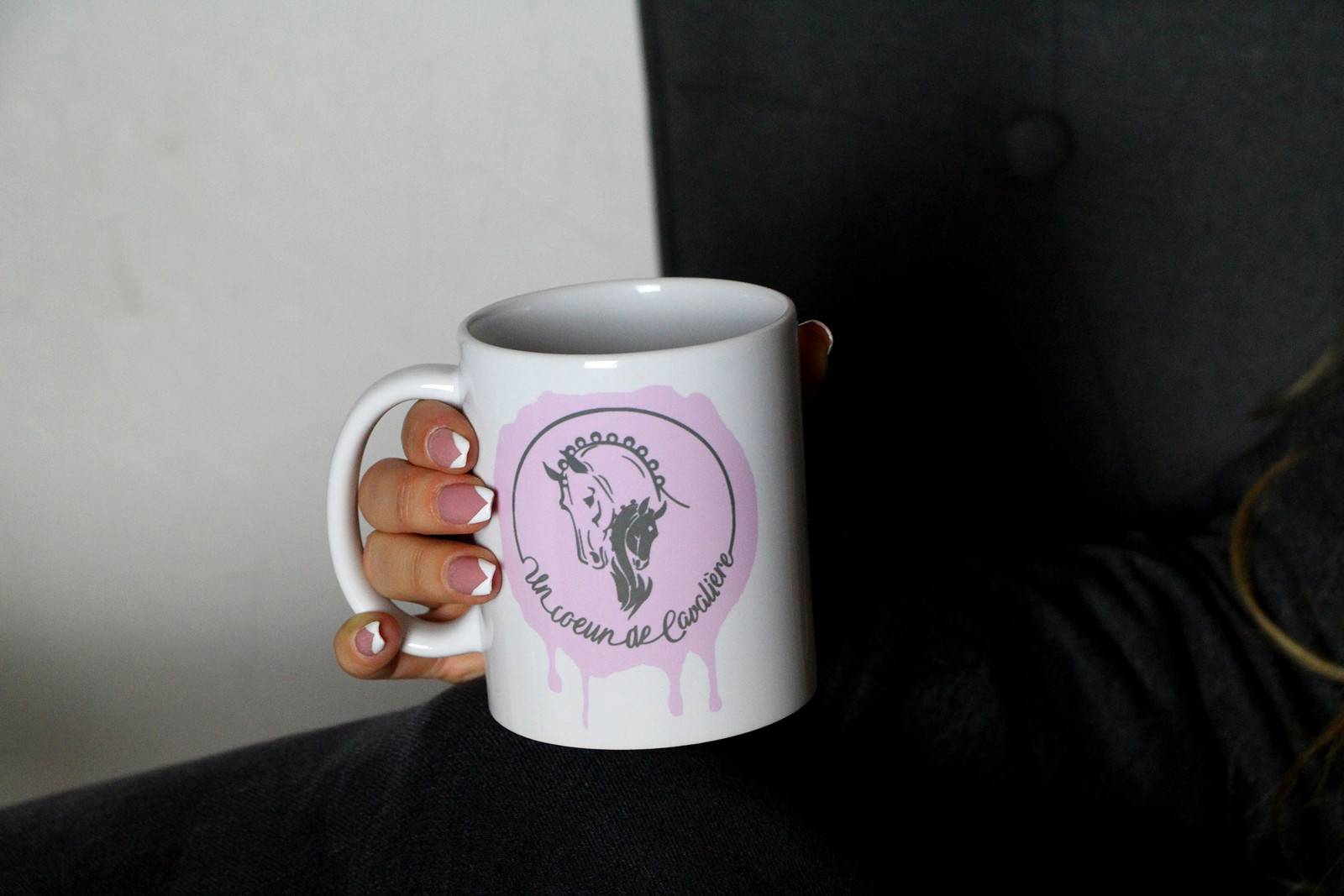 - Blanc / Rose : Mug blanc tache d'encre rose logo gris