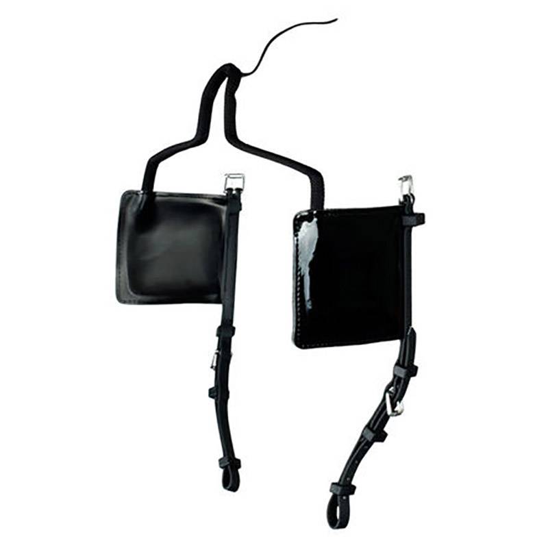 Ces œillères carrées en plastique de la marque Finn-Tack ont des bretelles fixes en matériau beta.