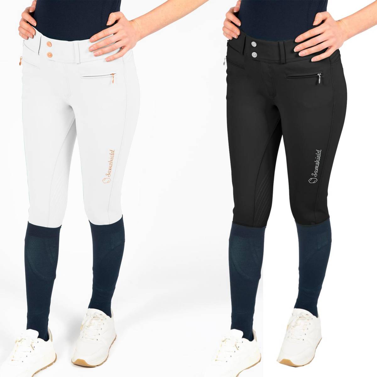 Samshield brodé en cristaux Swarovski sur le long de la jambe gauche en rose gold (pour le blanc) noir (pour le noir)