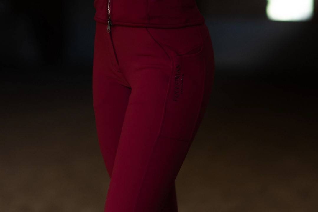 - Culotte d'équitation rouge foncé classique avec grip aux genoux et logo Equestrian Stockholm.