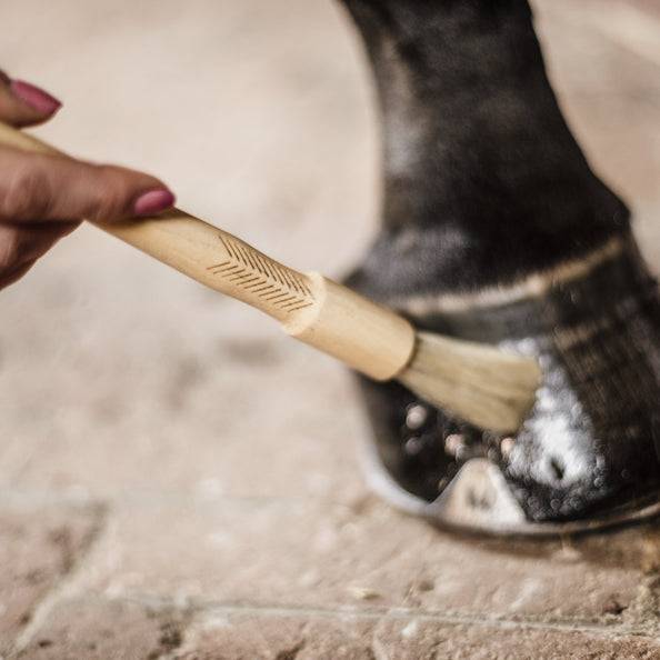 Ce pinceau verni en bois d'hévéa est parfait pour graisser ou huiler les sabots de votre cheval ! Nous avons utilisé des fibres naturelles pour être certains que la brosse soit solide et résistante. Elle est donc idéale pour les sabots de votre cheval. Le pinceau a deux grips et une forme anatomique. Nettoyez la brosse en la trempant dans l'eau chaude savonneuse et soyez certain de la garder pendant longtemps.