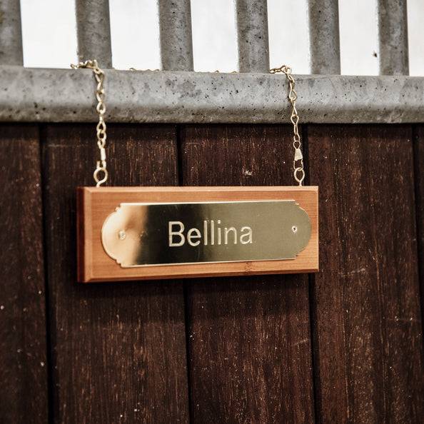 La plaque de box Grooming Deluxe vous permettra d'avoir le nom de votre cheval sur la porte de son box, tout en apportant un style très chic à vos écuries. La plaque en métal est entièrement personnalisable puisque ses deux visses lui permettent d'être enlevée pour ensuite être gravée.