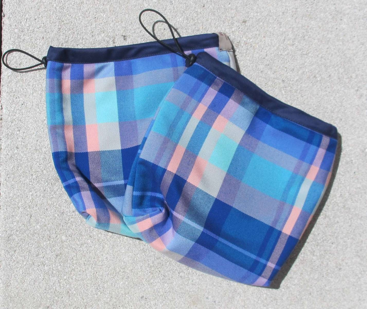 Pochettes Ecossais bleu/rose, avec liseré bleu marine