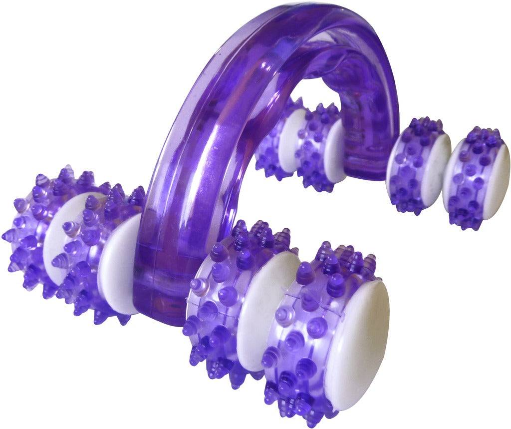Poignée P.V.C. avec 2 x 4 rouleaux à picots souples en polypropylène. Bonne prise en main pour un massage facile et efficace du dos, de l'avant et de l'arrière-main. Les picots agissent en profondeur pour détendre les muscles, stimuler la circulation sanguine et améliorer le drainage lymphatique. S'utilise avant ou après le travail.