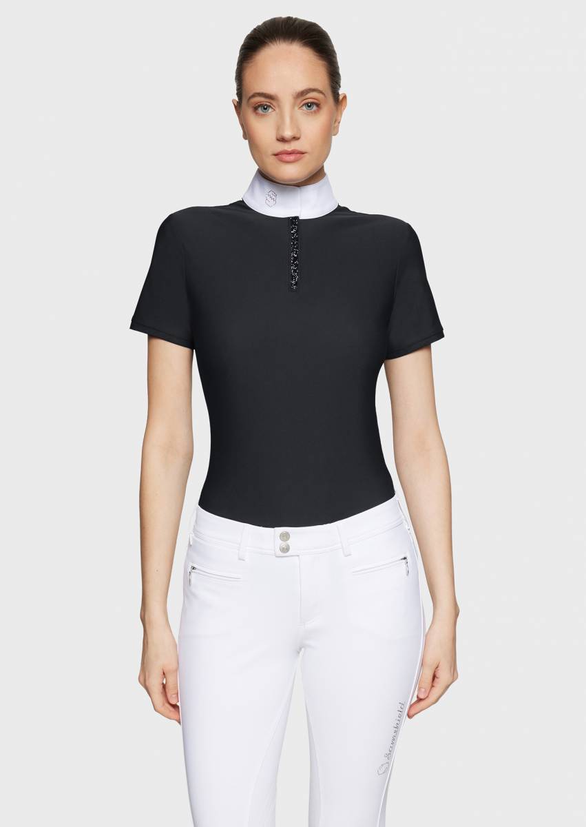Le polo de concours Roxy Premium SS26 de Samshield est conçu pour les cavaliers exigeants à la recherche d'un vêtement qui allie style et fonctionnalité. Sa conception soignée permet une grande liberté de mouvement tout en offrant une esthétique raffinée, parfaite pour les compétitions.