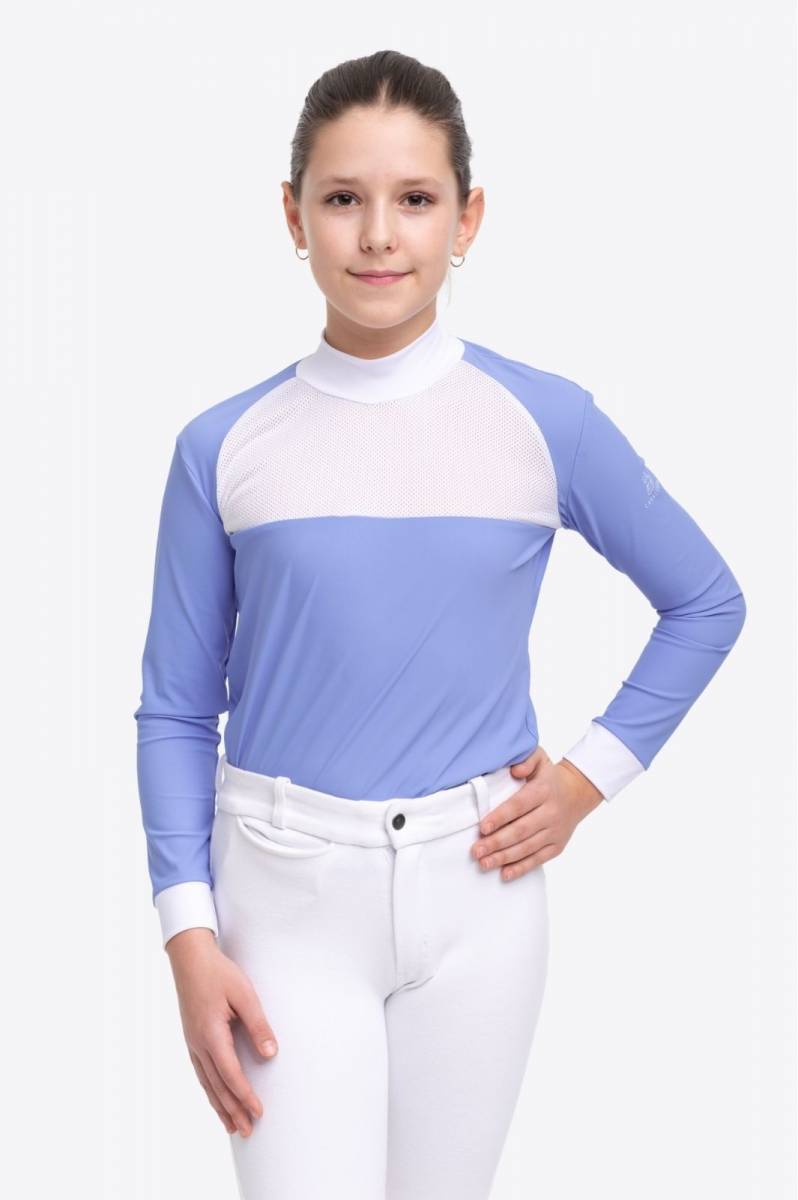 Ce polo de concours équestre pour enfants, signé Cavalliera, est conçu pour offrir une élégance raffinée tout en garantissant un confort optimal lors des compétitions. Fabriqué à partir de tissus techniques de haute performance, il intègre des panneaux en maille qui favorisent une excellente circulation de l'air, permettant ainsi à l'humidité de s'échapper efficacement. Sa jolie teinte bleu clair apporte une touche de fraîcheur, idéale pour les journées ensoleillées.