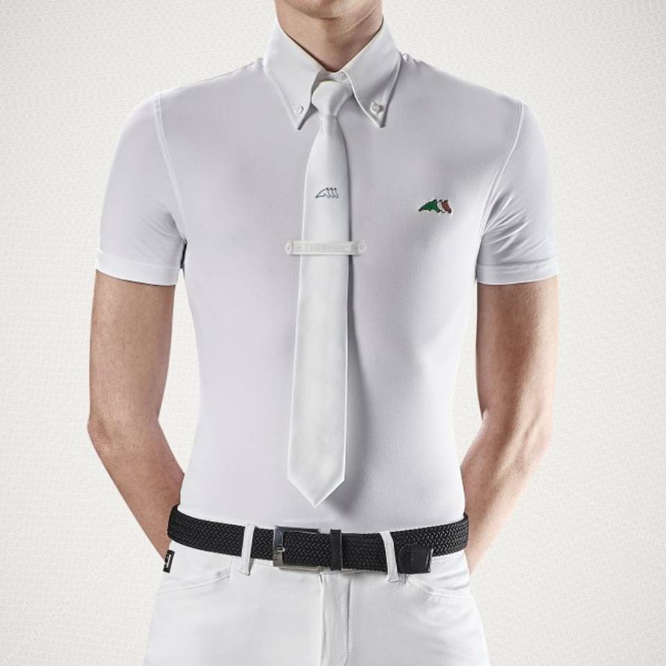 Le polo de compétition Homme modèle Fox de la marque Equiline est fabriqué en tissu technique, respirant et élastique pour une parfaite aisance de mouvements.