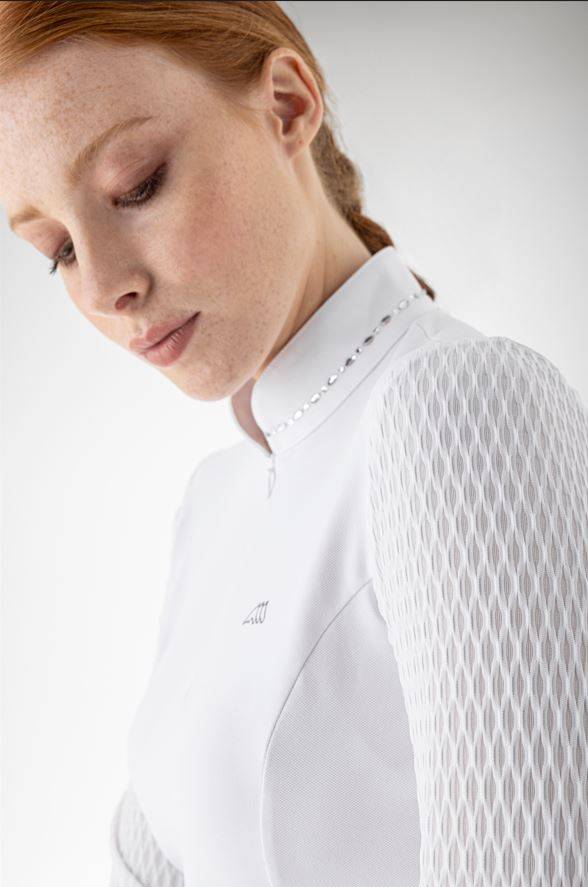 Fabriqué à partir d'un mélange de tissu technique piqué extensible et respirant et de tissu 3D, ce polo de compétition à manches longues Equiline pour Femme garantit confort et style.