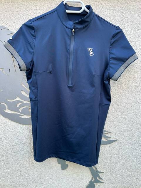 Découvrez le polo léger et respirant de la marque Flags and Cup, conçu pour les cavalières à la recherche d'un vêtement technique et élégant. Avec sa coupe près du corps et son col zippé, ce polo est idéal pour les activités équestres tout en offrant une touche de sophistication grâce à son bord de manches brillant.