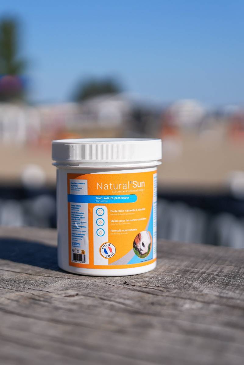 Natural'Sun est une lotion solaire spécialement conçue pour protéger la peau de votre cheval des rayons UV. Conditionnée en pot de 250 ml, cette formule naturelle est essentielle pour prévenir les coups de soleil et la photosensibilisation, qui touchent non seulement les peaux sensibles, mais aussi celles qui semblent plus robustes.