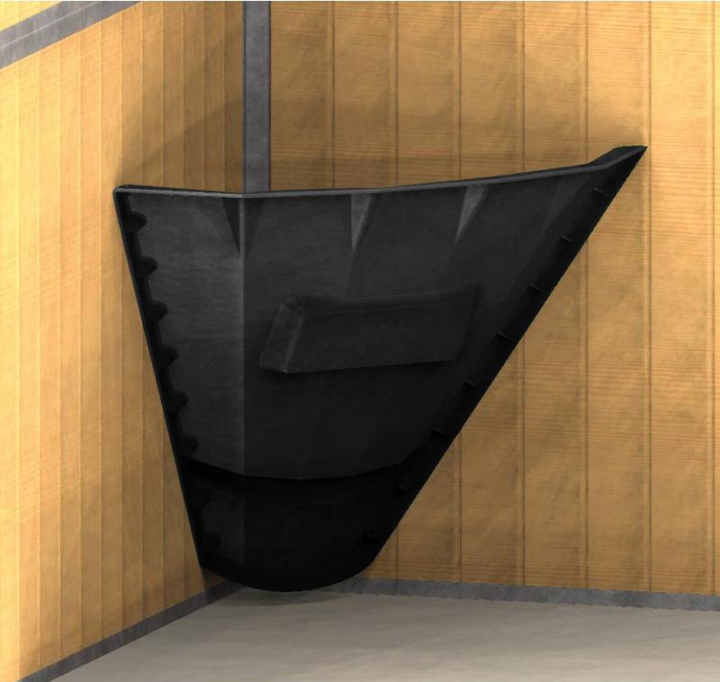 Ce râtelier d’angle en résine s’adapte parfaitement pour une pose en angle de mur dans les boxes.