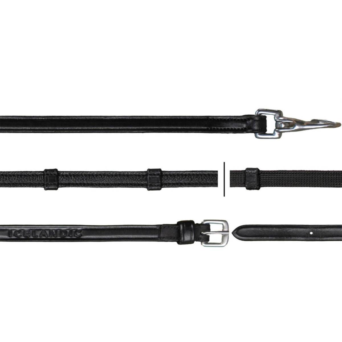 - Les rênes Hunter de chez Dy'on sont en partie en cuir et en partie en grip avec des arrêtoires en cuir.