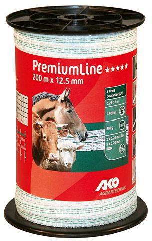 Le ruban Premium AKO garantit les conductivité et sécurité de contention les plus élevées, même sur les clôtures de grande longueur. Grâce à l'utilisation de gros conducteurs en cuivre étamé, on obtient une conductivité 40 fois plus élevée qu'avec les matériaux conducteurs usuels.