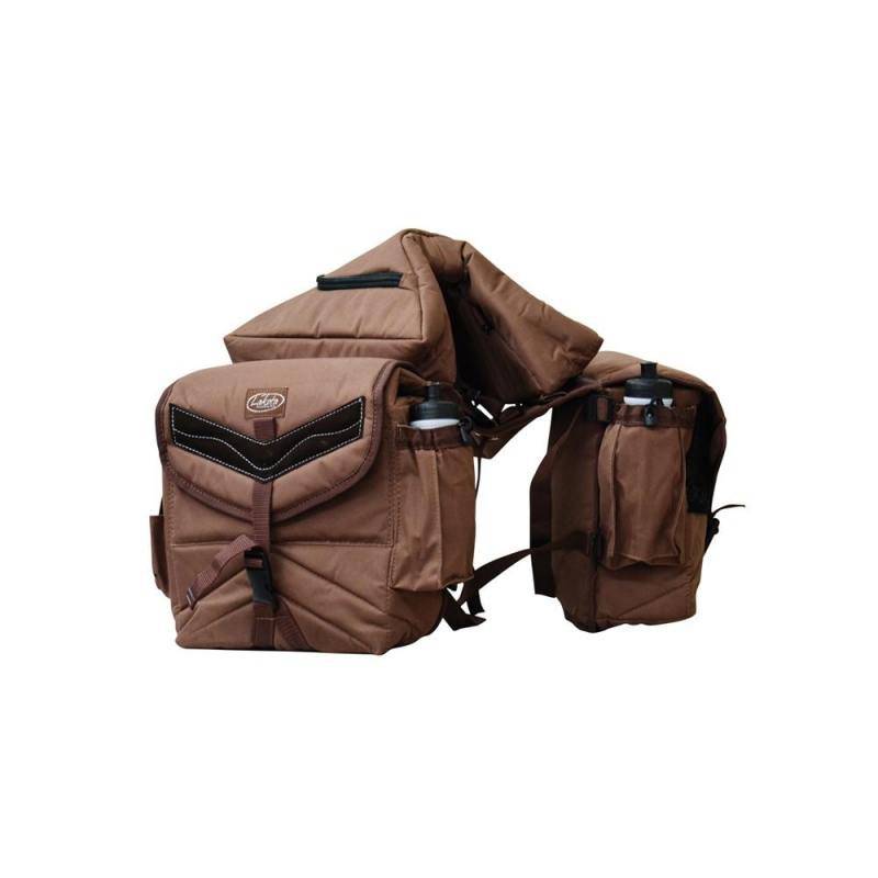 - Sacoche de randonnée à cheval triple en nylon avec bordures renforcées en cuir de vachette pleine fleur souple naturel