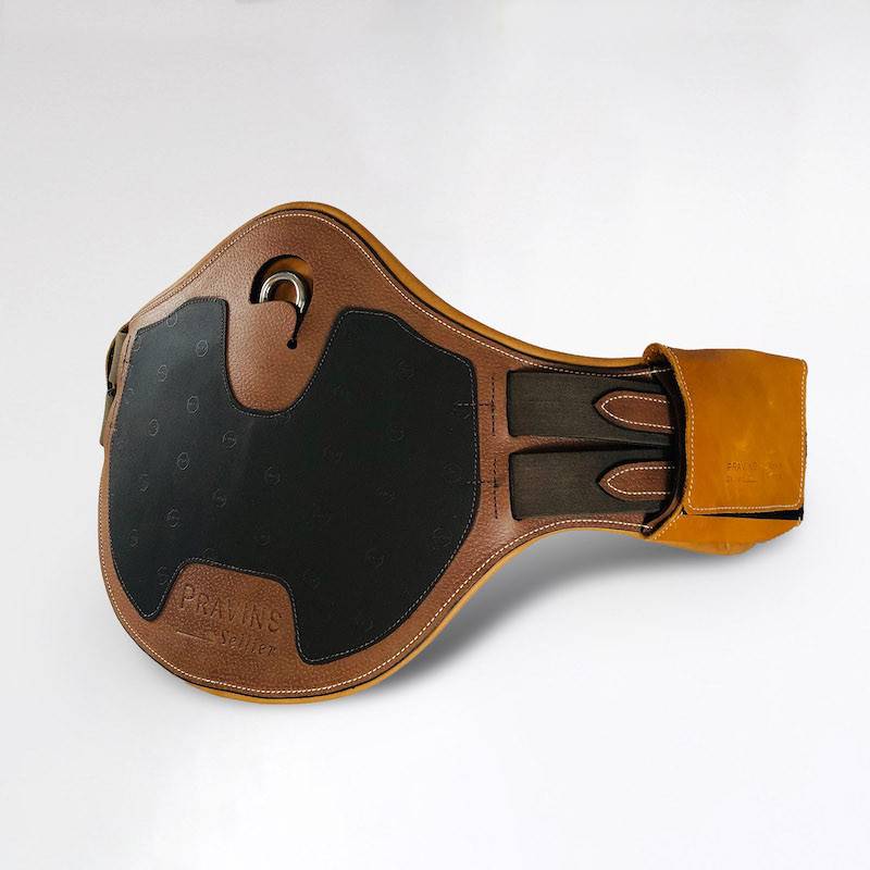 Protection du sternum en cas de choc avec les antérieurs. Grande liberté de l’avant main grace à la forme ergonomique de la sangle, maintien et confort.