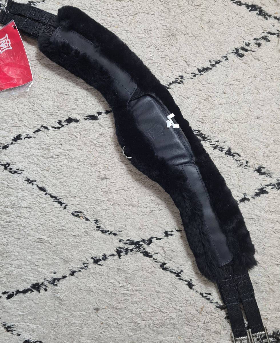 Pour les chevaux plus „ronds“ à dos court, cage thoracique large et poitrail étroit. Grâce à sa forme particulière, la sangle suit bien le galbe des côtes, ce qui l'empêche de glisser vers l‘avant.