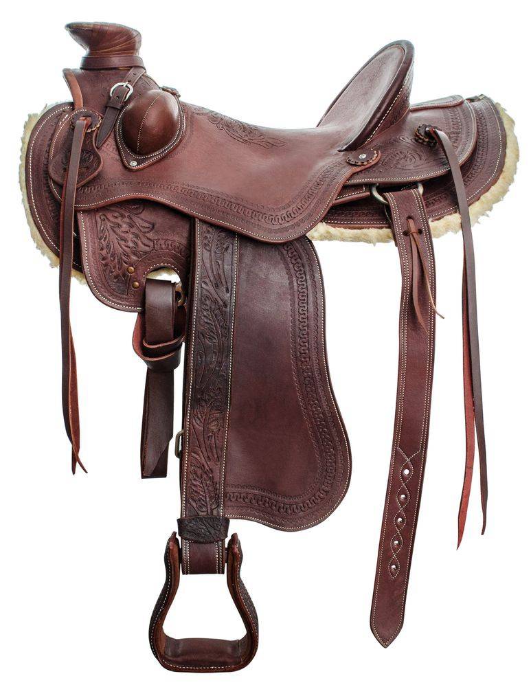 - Selle western modèle RANCH en cuir avec motif pyrographié basket.