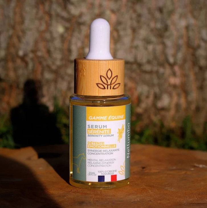 Le sérum Sérénité Cheval de Nellumbo est un soin olfactif élaboré pour favoriser la détente émotionnelle, apaiser les tensions et améliorer la concentration de votre cheval avant des moments cruciaux tels que le travail, le transport ou les compétitions.