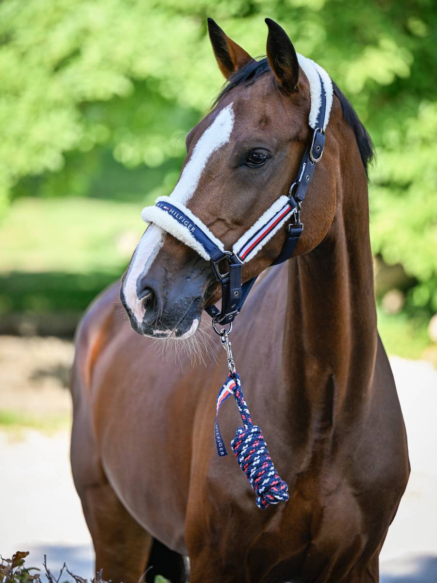 Cet ensemble combine la longe tricolore signée Tommy Hilfiger et le licol classique avec le logo Tommy Hilfiger et le détail Global Stripe.