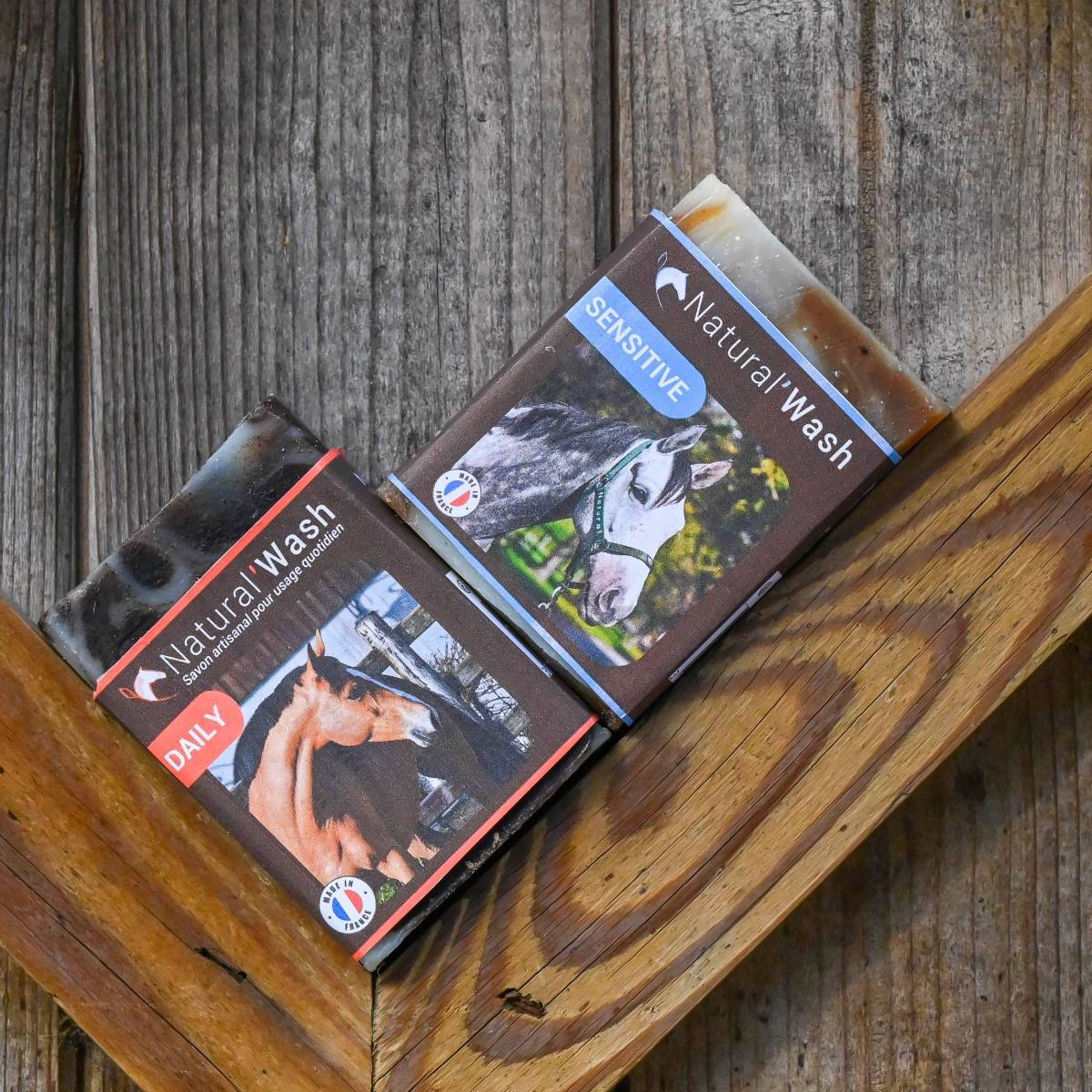 Natural'Wash est un savon solide artisanal et innovant pour laver, apaiser et/ou faire briller la robe et les crins de votre cheval/poney. En plus d'être une solution écologique et un soutien à nos entreprises artisanales françaises, ce savon apporte douceur et brillance et peut être utilisé pour un usage quotidien pour la version Daily ; et a des propriétés apaisantes, anti-fongiques et anti-bactériennes, véritable soutien dans la gestion des peaux dermiteuses ou irritées pour la recette Sensitive.