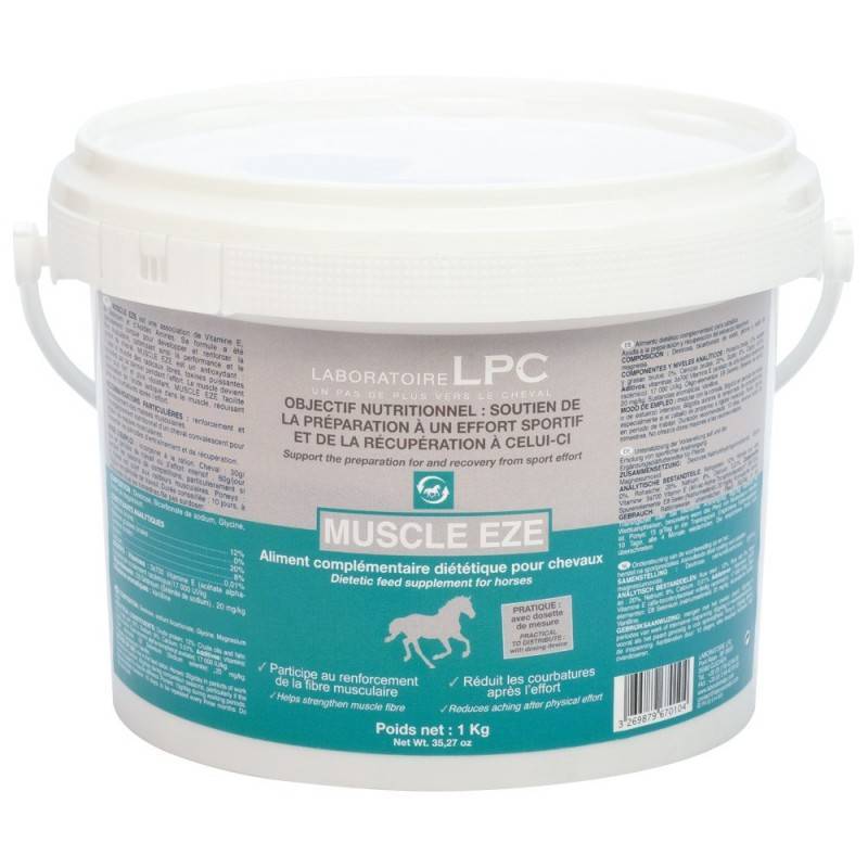 Caractéristiques Muscle Eze du laboratoire LPC est destiné à soutenir les muscles du cheval athlète et favoriser la récupération.